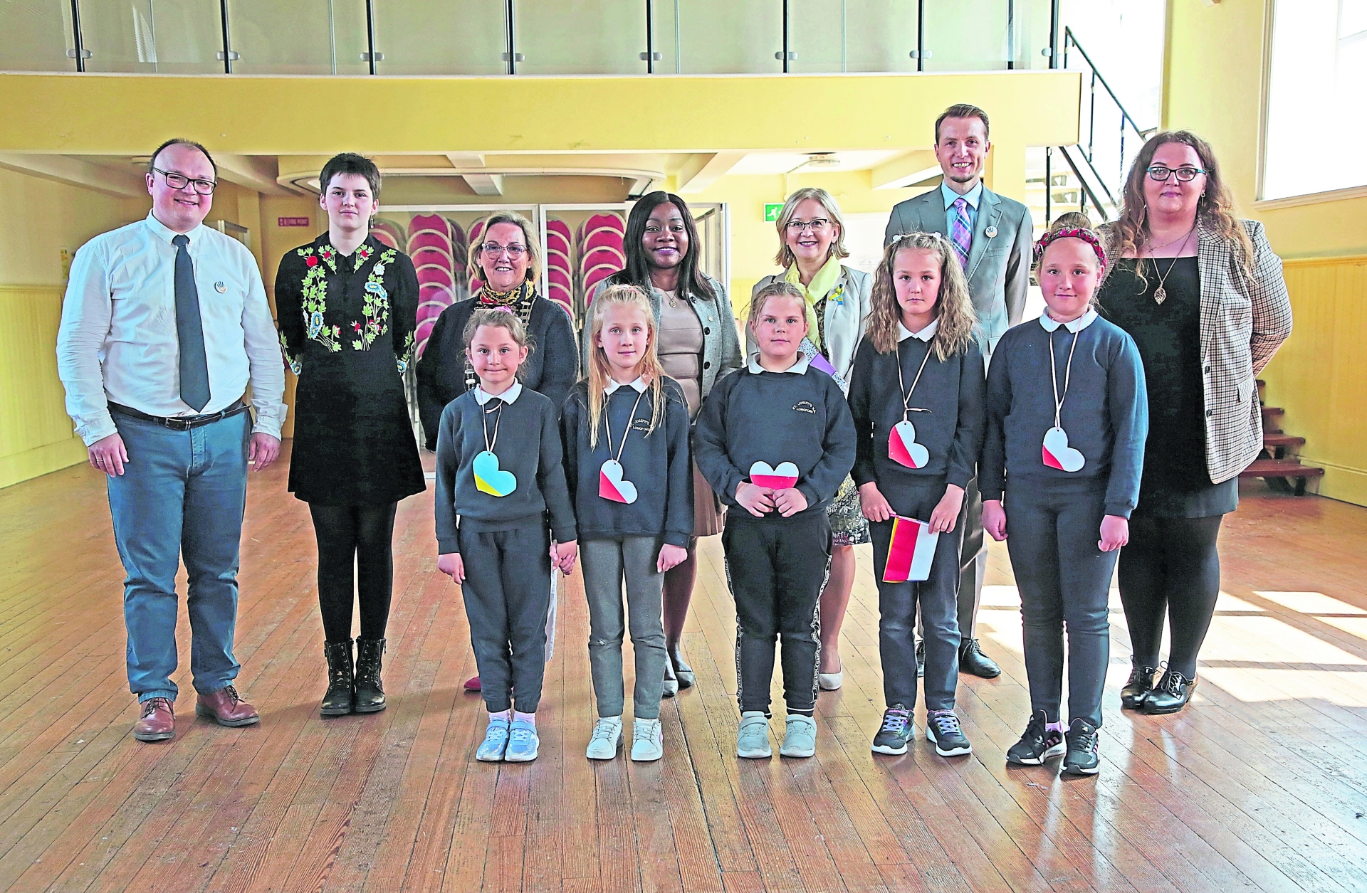 In St Joseph’s National School, Longford town last Wednesday for the visit of the Polish Ambassador to Ireland were; Ambassador Anna Sochanska, Cathaoirleach of Longford County Council Cllr Peggy Nolan, Cathaoirleach of Longford MD, Cllr Uruemu Adejinmi, Chairperson of Midlands Polish Community CLG Slavek Kazek, opera student from Ukraine Amalia Shmyhouska, Deputy Counsellor in the Polish Embassy in Dublin Maciej Wojcik, Barbara Stachowska-Pietkiewicz, Julia Wanta, Amelia Ochenkowska Michaela Kearney, Maja Peczek and Kornelia Rasada Picture: Shelley Corcoran