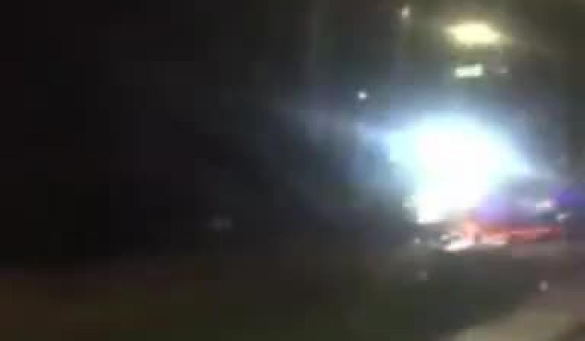 A number of garda cars and emergency vehicles are present at the scene.