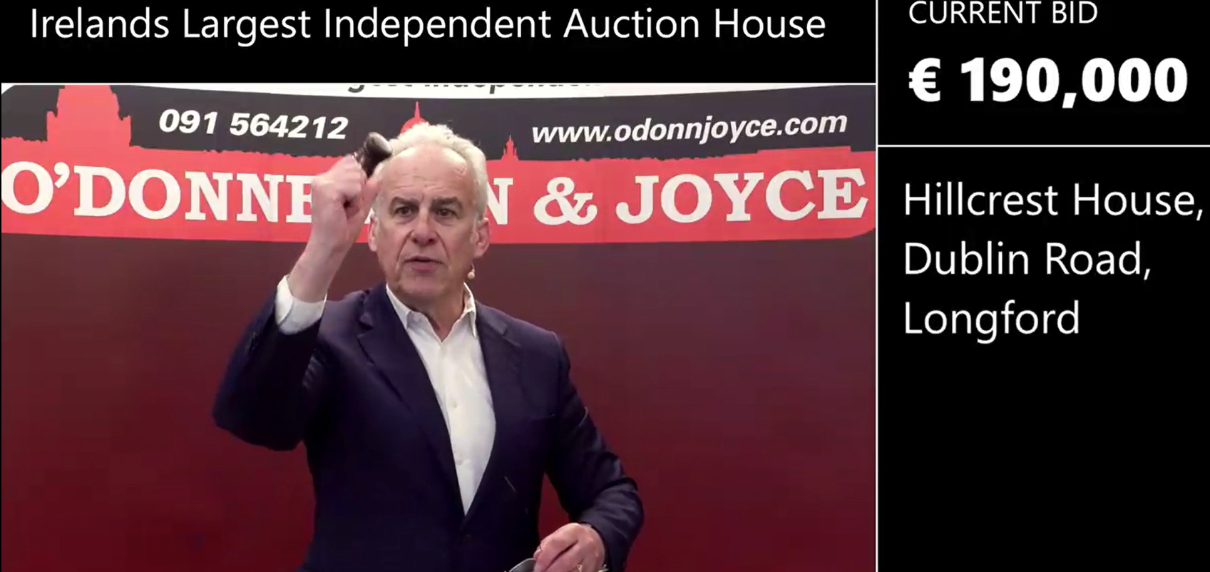 Said Mr O'Donnellan as he brought down the hammer, "All done at €190,000. Sold! Opening bid, well done. That's the way to do it!"