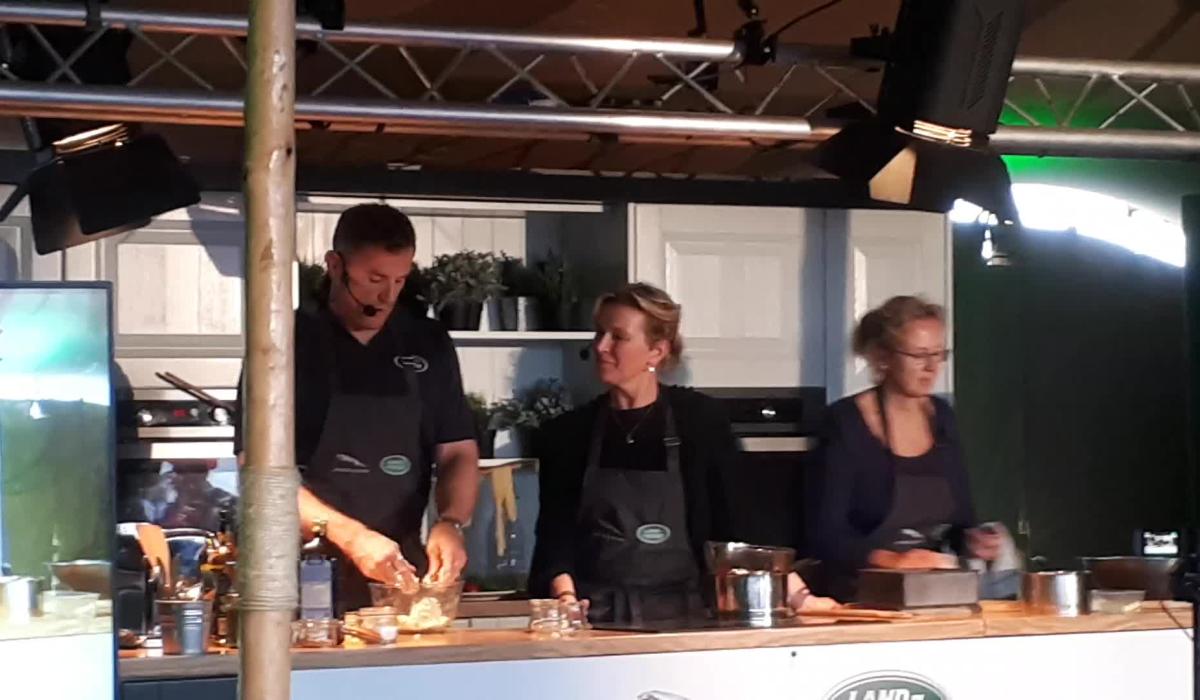 Irish Rugby international Jamie Heaslip, who attended Newbridge College, joins Rachel Allen at the Jaguar/Land Rover tent.
