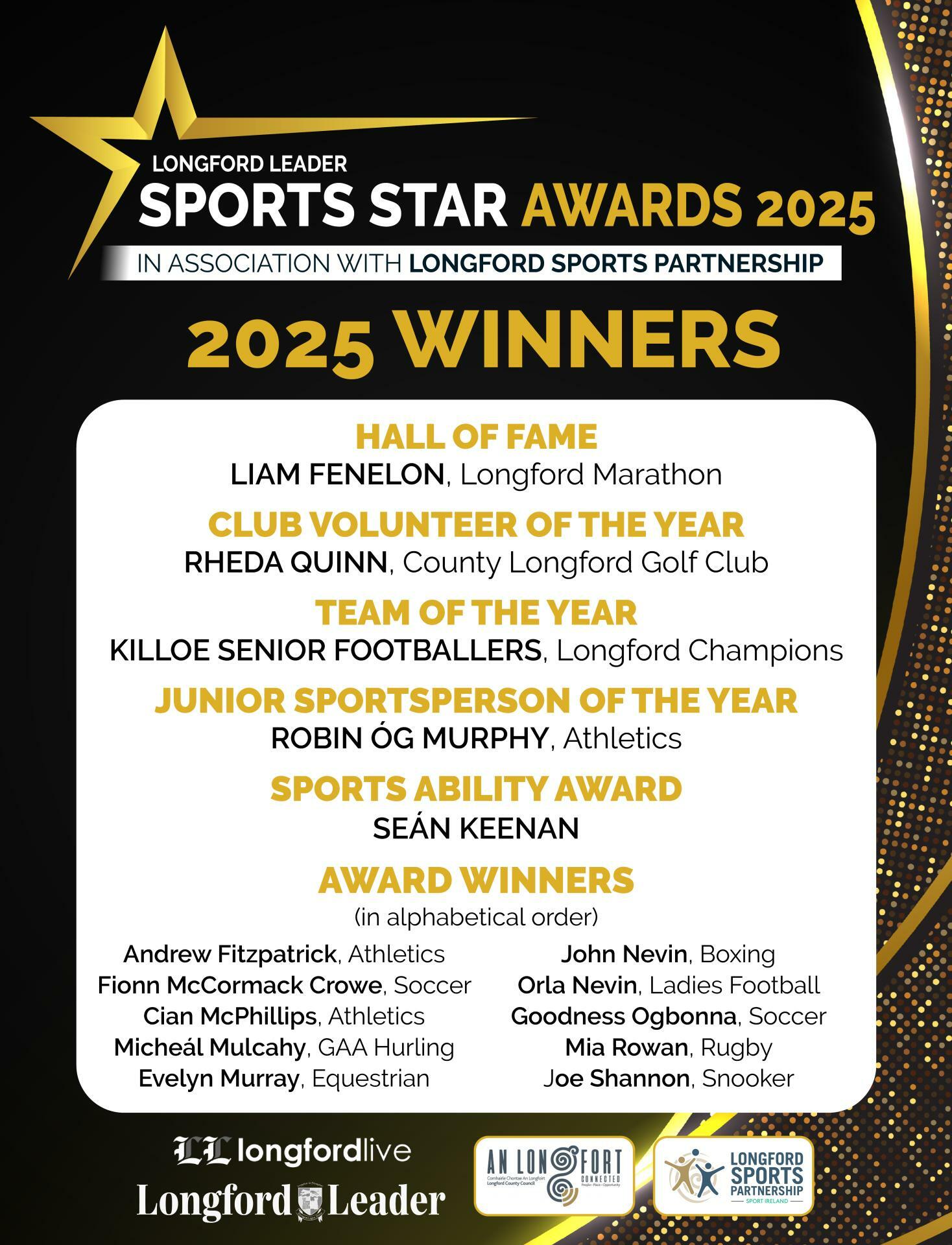 Also read: Top Irish athlete Cian McPhillips crowned 2025 Longford Sports Star of the Year