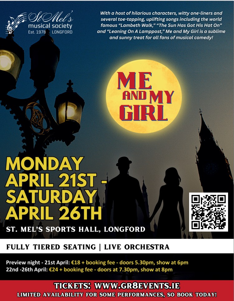 Me and My Girl runs at St Mel’s College, Longford from April 21 (preview night) to April 26. Curtain up at 8pm each night (6pm for preview night).